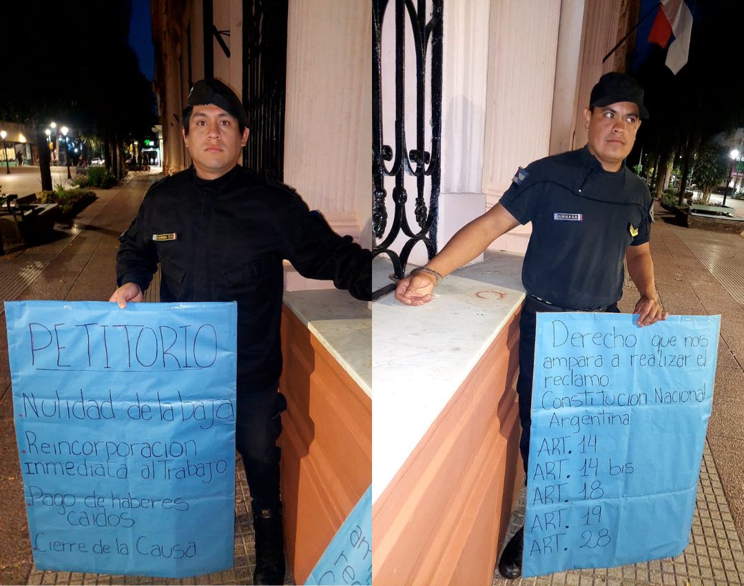 En ese contexto, Girula y Correa sostienen que fueron dados de baja de manera irregular y reclaman “la nulidad de la baja, la reincorporación inmediata al trabajo, el pago de haberes caídos y el cierre de la causa”. Además, remarcaron que su protesta está amparada por la Constitución Nacional, citando los artículos 14, 14 bis, 18, 19 y 28 como base legal para su derecho a manifestarse.