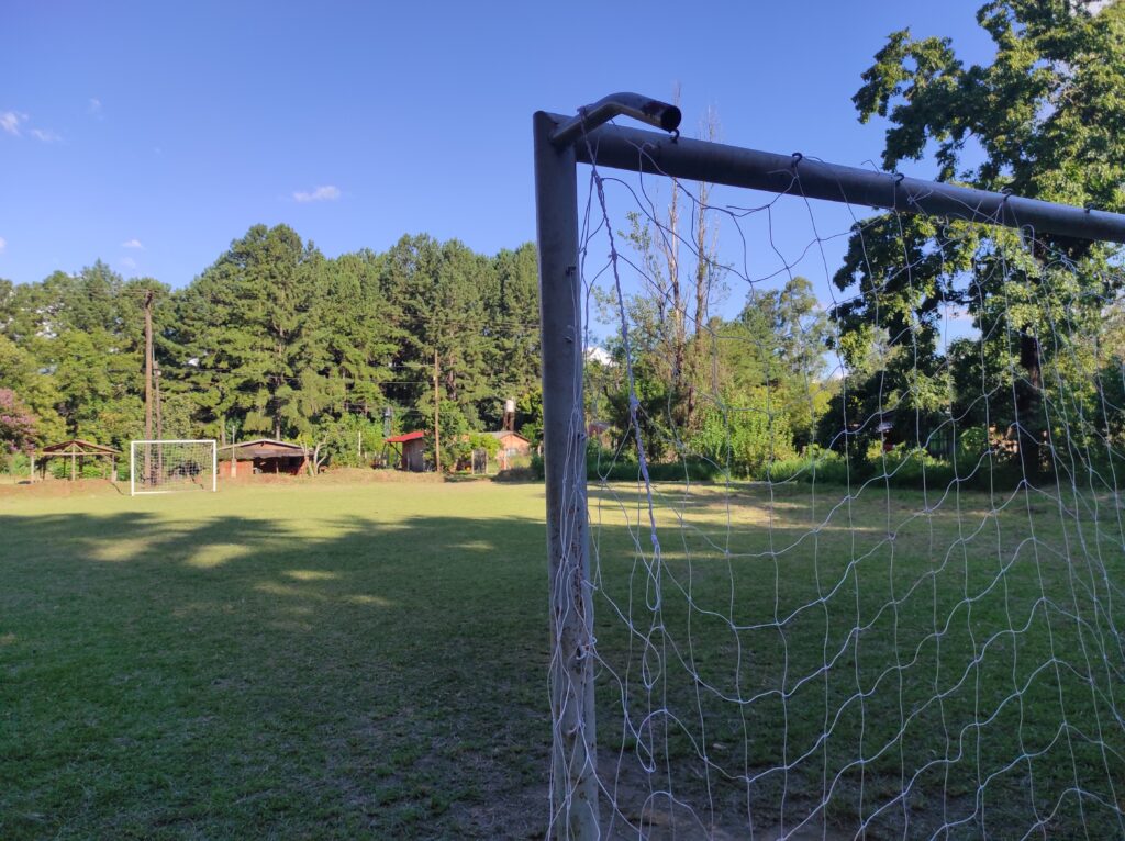 La cancha de fútbol 7 del barrio 17 de Noviembre, en la ciudad de Montecarlo, fue recuperada y hoy vuelve a ser un espacio clave para el encuentro y el deporte de las infancias del barrio. El predio está ubicado frente al quincho barrial y se accede por un pequeño puente que lo separa de la calle.