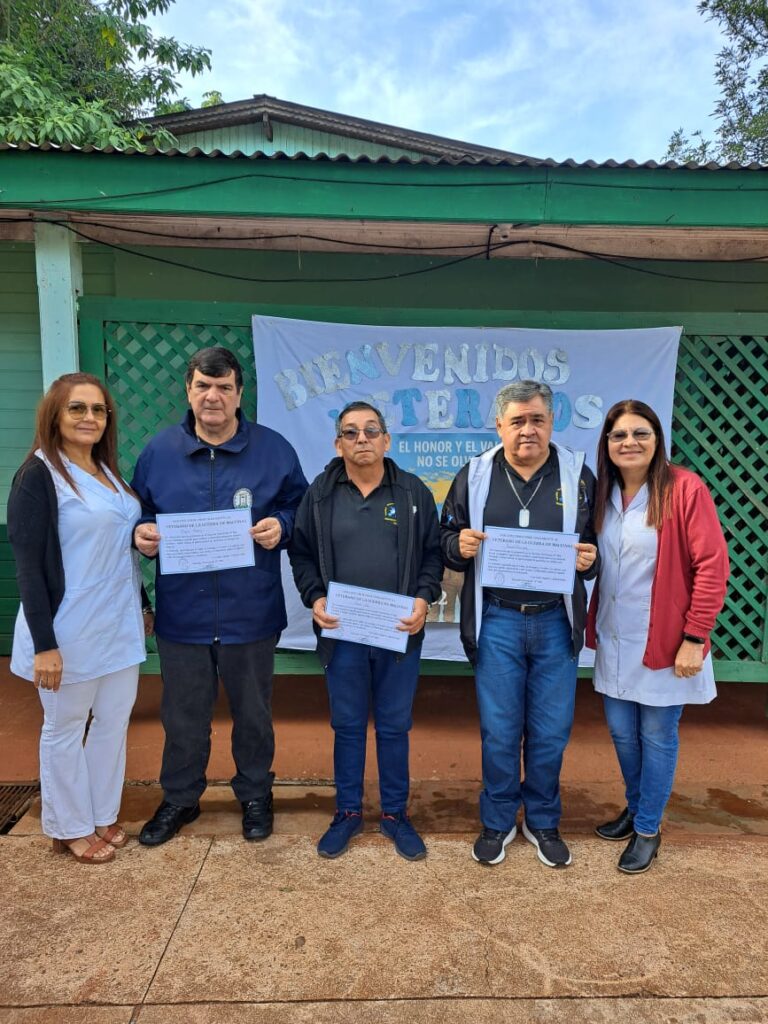 Desde hace quince días, recorren distintas escuelas de la zona, como el Colegio N°426, aula satélite «Yaca Pora», el Colegio 483 de Piray Guazú, y la Escuela N°906 del barrio Malvinas. En cada encuentro, además de brindar charlas, donan libros provenientes del Centro de Veteranos de Guerra de la Línea de Merlo, gracias al contacto solidario entre camaradas.