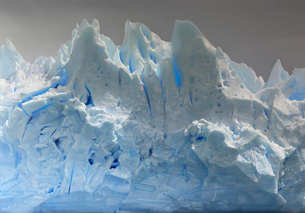 En el mismo sector también se retiró un ploteo inspirado en una obra del artista Helmut Ditsch, vinculado al glaciar Perito Moreno. Ambas piezas quedaron bajo resguardo mientras se analiza su restauración y cuidado.