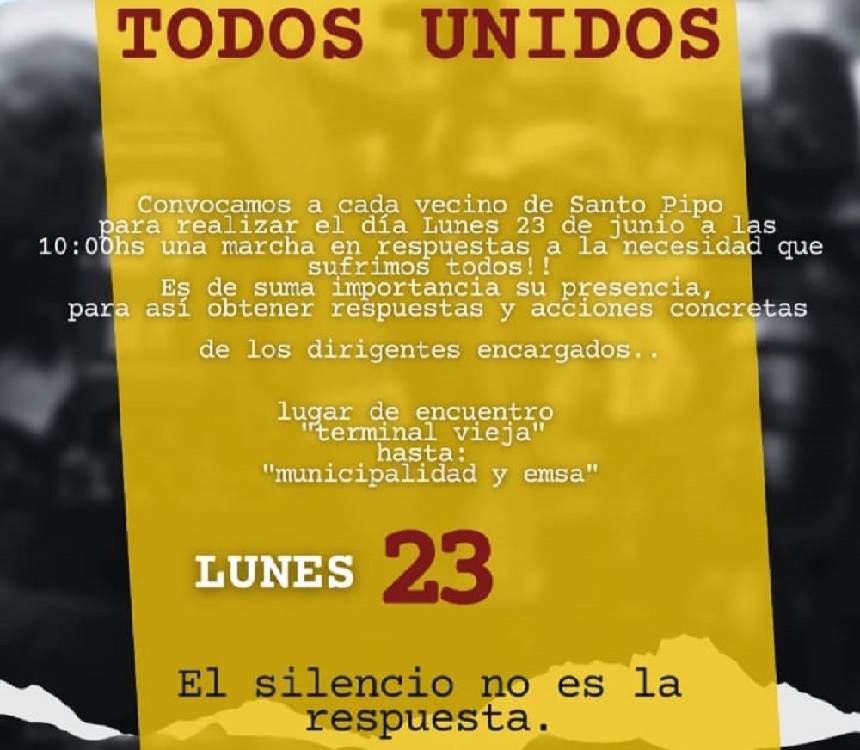 El pasado viernes 20 de junio, en las inmediaciones del barrio Apepú de la localidad de Santo Pipó (sobre ruta nacional 12), ocurrió un trágico siniestro vial entre un colectivo de mediana y larga distancia y una motocicleta de 110 cilindradas. El impacto dejó como saldo la muerte de las tres personas que viajaban en la moto: Yamila Venegas (15), Priscila Erika Venegas (22) y Gael Zárate, de apenas 4 años. Como respuesta al dolor y la indignación que generó la tragedia, vecinos autoconvocados de Santo Pipó organizaron una marcha para este lunes 23 de junio a las 10 de la mañana, en reclamo de justicia y mayor seguridad vial.