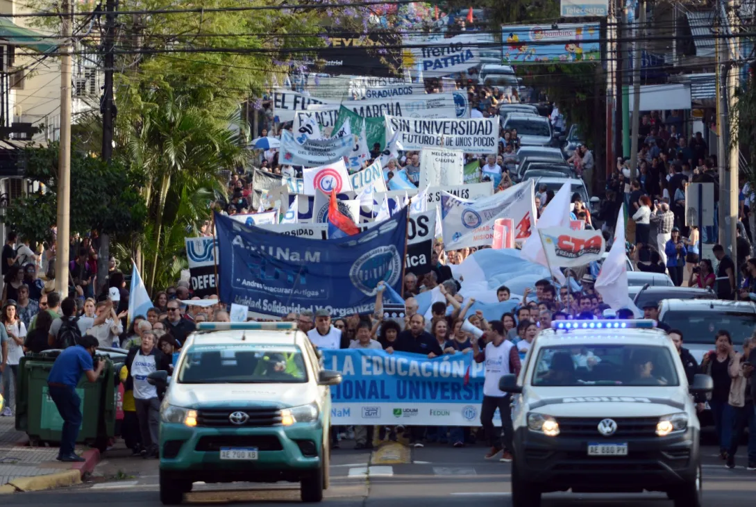 En paralelo al anuncio del presidente Javier Milei sobre el Presupuesto 2026, que contempla aumentos del 5% en jubilaciones, 17% en salud, 8% en educación y 5% en pensiones por discapacidad, hoy se desarrolla en todo el país la tercera Marcha Federal Universitaria. En Misiones, la convocatoria sera en Posadas , Oberá y Eldorado, esta ultima tendría una concentración en la plaza El Colono, con oradores y una marcha que contará con el acompañamiento del MPL, la CGT y el MTE.